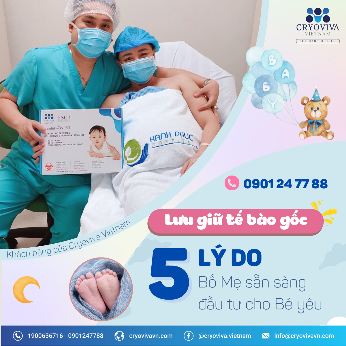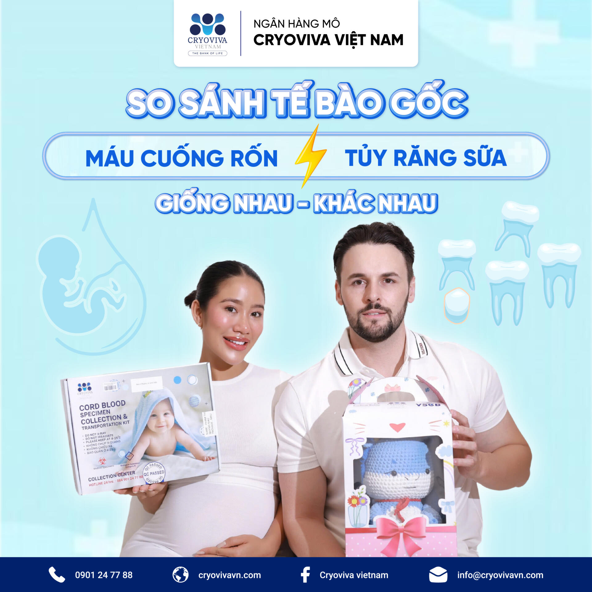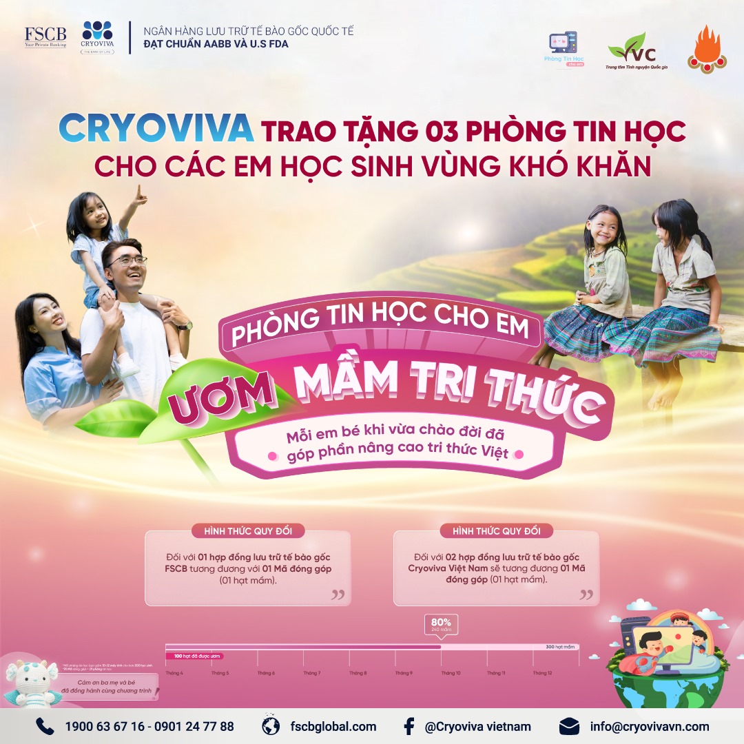Gọi vào hotline 0901 24 77 88 hoặc truy cập Fanpage Cryoviva Vietnam để được tư vấn miễn phí