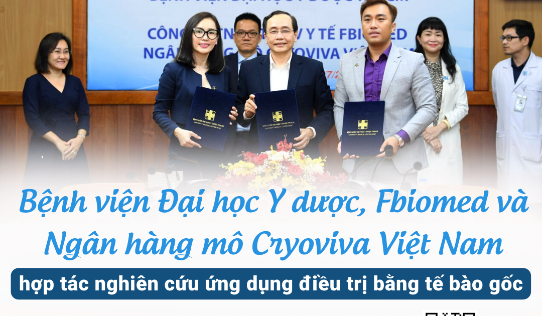 Ngày 12/07/2022, tại Bệnh viện Đại học Y Dược TPHCM (BV ĐHYD TPHCM) đã diễn ra lễ ký kết biên bản ghi nhớ hợp tác nghiên cứu ứng dụng điều trị bằng tế bào gốc giữa BV ĐHYD TPHCM, Công ty TNHH Thương mại Dịch vụ Y tế FbioMed và Ngân hàng mô Cryoviva Việt…