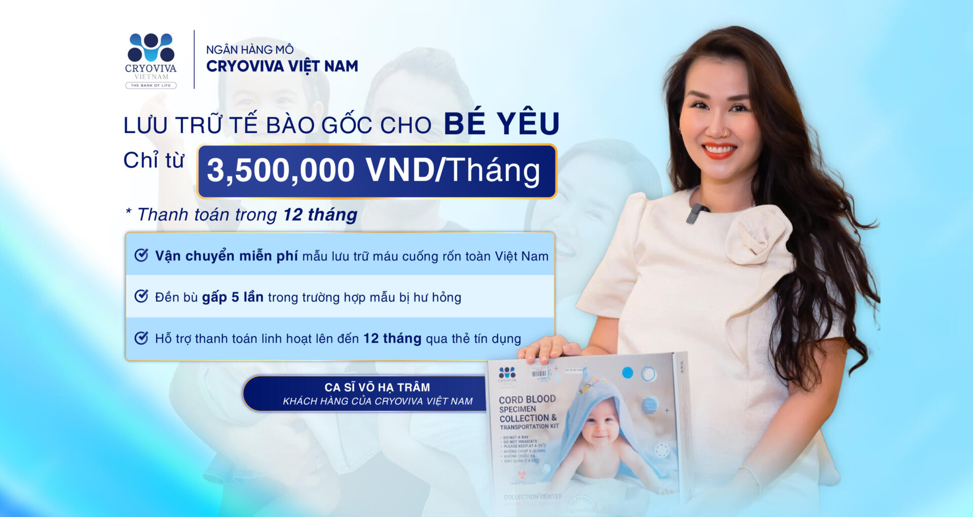 Cryoviva Việt Nam tạo điều kiện đến mọi gia đình tại Việt Nam có thể chuẩn bị món quà “Bảo hiểm sinh học” để bảo vệ sức khoẻ cho đứa bé và cả gia đình.