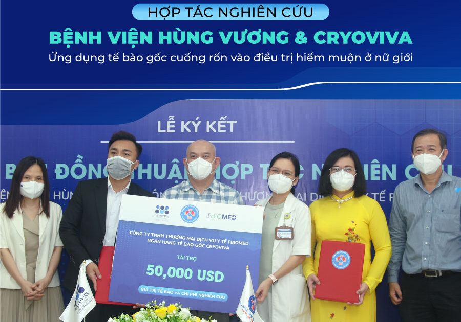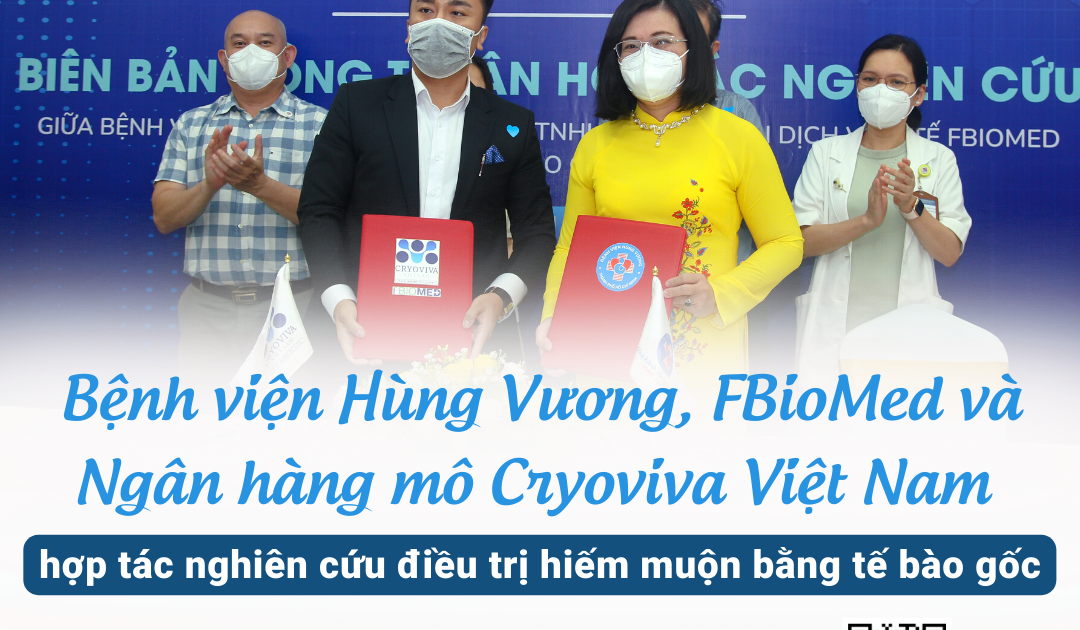 Ngày 25/03/2022, tại Bệnh viện Hùng Vương (TP. HCM), Bệnh viện Hùng Vương và Công ty TNHH Thương mại Dịch vụ Y tế FBioMed chính thức ký kết thỏa thuận hợp tác nghiên cứu với đề tài Điều trị hiếm muộn bằng tế bào gốc Bệnh viện Hùng Vương, FBioMed, Ngân hàng mô Cryoviva hợp…